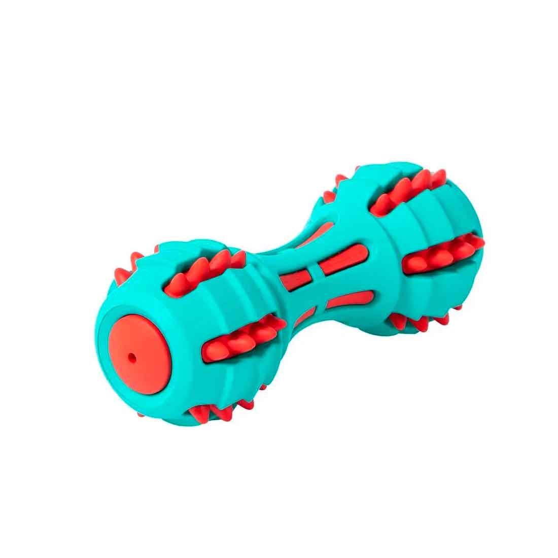 Además de ser divertido y resistente, este juguete también tiene una función adicional: ¡puedes colocar golosinas dentro! El Snack Dumbbell viene con compartimentos especiales donde puedes insertar premios o snacks para perros, lo que lo convierte en un juguete interactivo que estimula el juego y la actividad física.