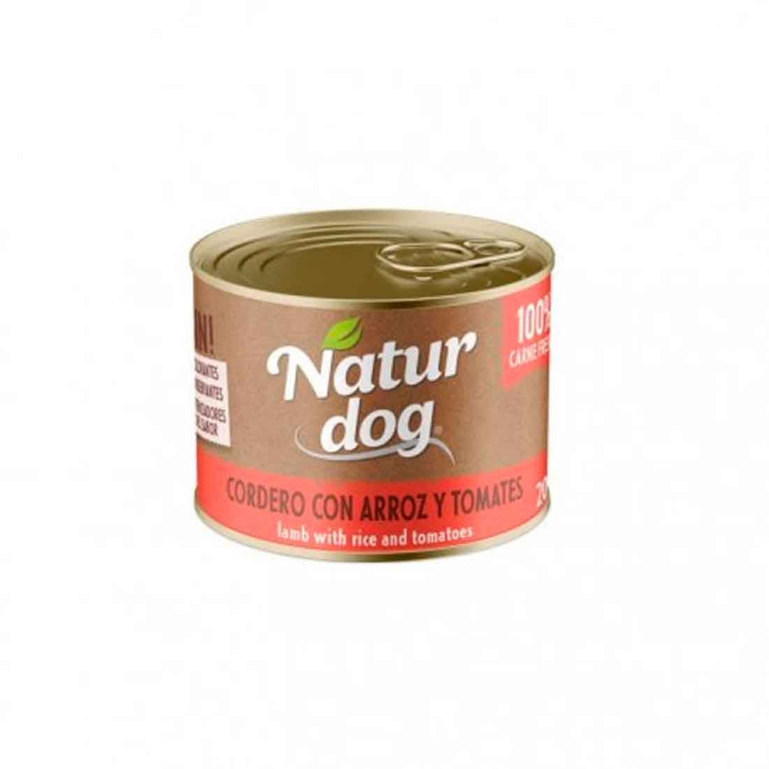 Lata para Perro de Naturdog monoproteico sabor cordero con arroz y tomates