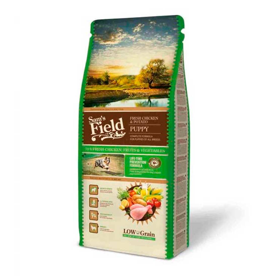 Sam’s Field Fresh Chicken & Potato Junior Large es una formula para cachorros y perros jovenes de razas grandes.